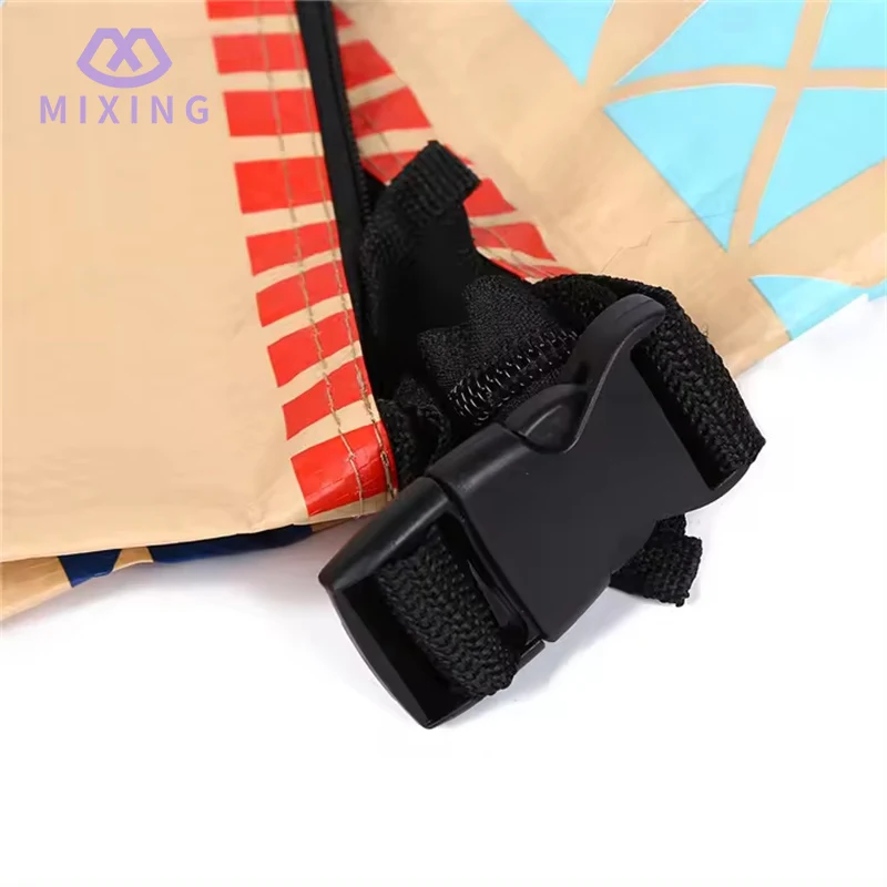 เมื่อไม่ได้เปิด กระเป๋าชายหาดเสื่อชายหาดทอ PP อเนกประสงค์ของจีนของ Mixing จะเป็นกระเป๋าชายหาดที่ดูเรียบร้อยซึ่งสามารถเก็บสิ่งของจำเป็นสำหรับชายหาดได้อย่างง่ายดาย เช่น ชุดว่ายน้ำ ผ้าเช็ดตัว ครีมกันแดด แว่นกันแดด และมีช่องกระเป๋าเล็ก ๆ เหมาะที่จะเก็บของชิ้นเล็กๆ เช่น โทรศัพท์มือถือและกุญแจ โดยไม่จำเป็นต้องผสมกับผ้าเช็ดตัวเปียกหรือชุดว่ายน้ำ และยังช่วยป้องกันไม่ให้สูญหายไปในทรายโดยไม่ตั้งใจอีกด้วย