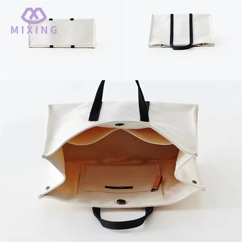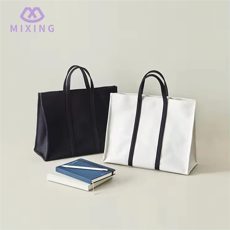 กระเป๋าโท้ตผ้าแคนวาสธรรมดาพร้อมหูหิ้วมีดีไซน์เรียบๆ ใช้งานได้หลากหลาย ไม่มีลวดลายแฟนซี และสีค่อนข้างอ่อน สามารถปรับให้เข้ากับสถานการณ์ในแต่ละวันได้หลากหลาย โดยไม่จำเป็นต้องเตรียมถุงหลายใบเพื่อสลับไปมา